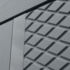 Экошпон.Наружный лист металла 1,5 мм. Дизайн панели ФЛС СО ВСТАВКОЙ ЧЕРНАЯ ЛАКОБЕЛЬ Объемная фрезеровка МДФ 10 мм, цвет «Ясень графит»; Наличник МДФ 80 мм, гладкие