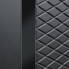 Экошпонированный лист МДФ 10 мм с объемной фрезеровкой, цвет «Черный кварц». Вертикальная вставка из черной лакобели.