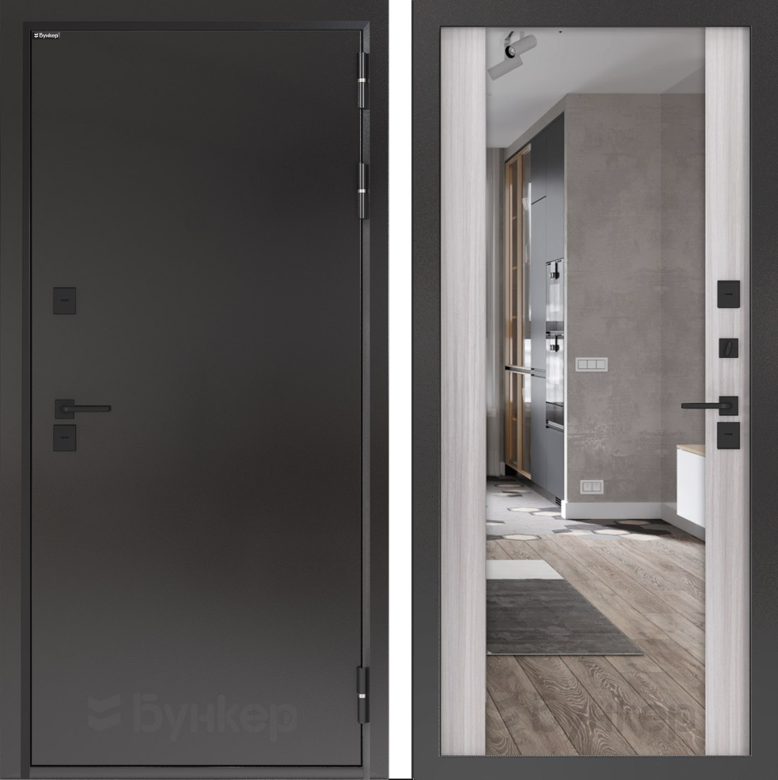 Входная дверь с терморазрывом Бункер BN 10 Тепло Плюс - Зеркало максимум Сандал белый