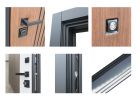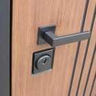 Наружный лист металла 1,5 мм. Экошпонированная дизайнерская панель МДФ 10 мм. с линейной фрезеровкой в цветовой комбинации: "Дуб кантри темный", черное