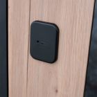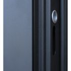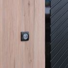 Наружный лист металла 1,5 мм. Панель МДФ 10 мм. Объемная фрезеровка. Цветовая комбинация: “дуб галиф натур”, “шагрень черная”. Декоративная пластиковая вставка, цвет "черный". Наличник МДФ 80 мм., цвет “черный кварц”.