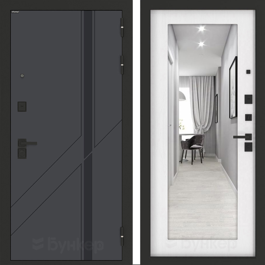 Входная дверь Бункер BN-12 - Зеркало 18 Белое дерево