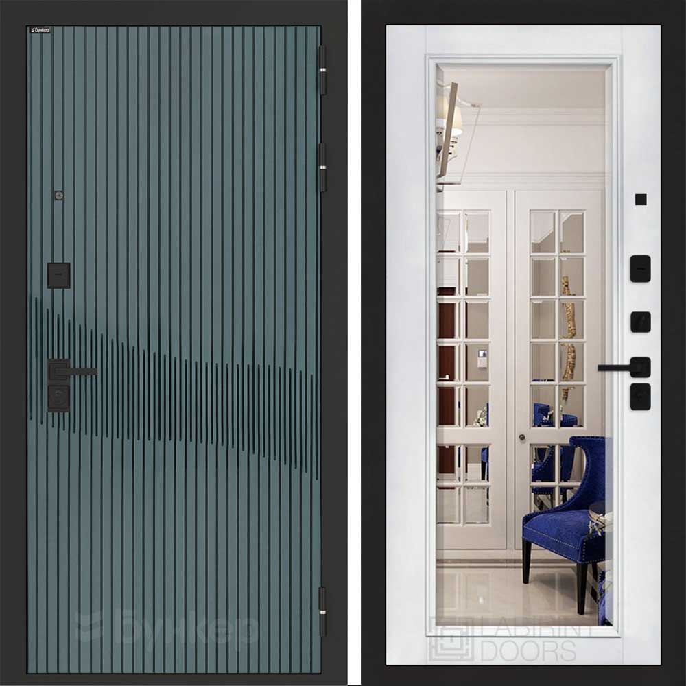 Входная дверь Бункер BN-13 - Зеркало Белый софт, фацет с багетом 16мм