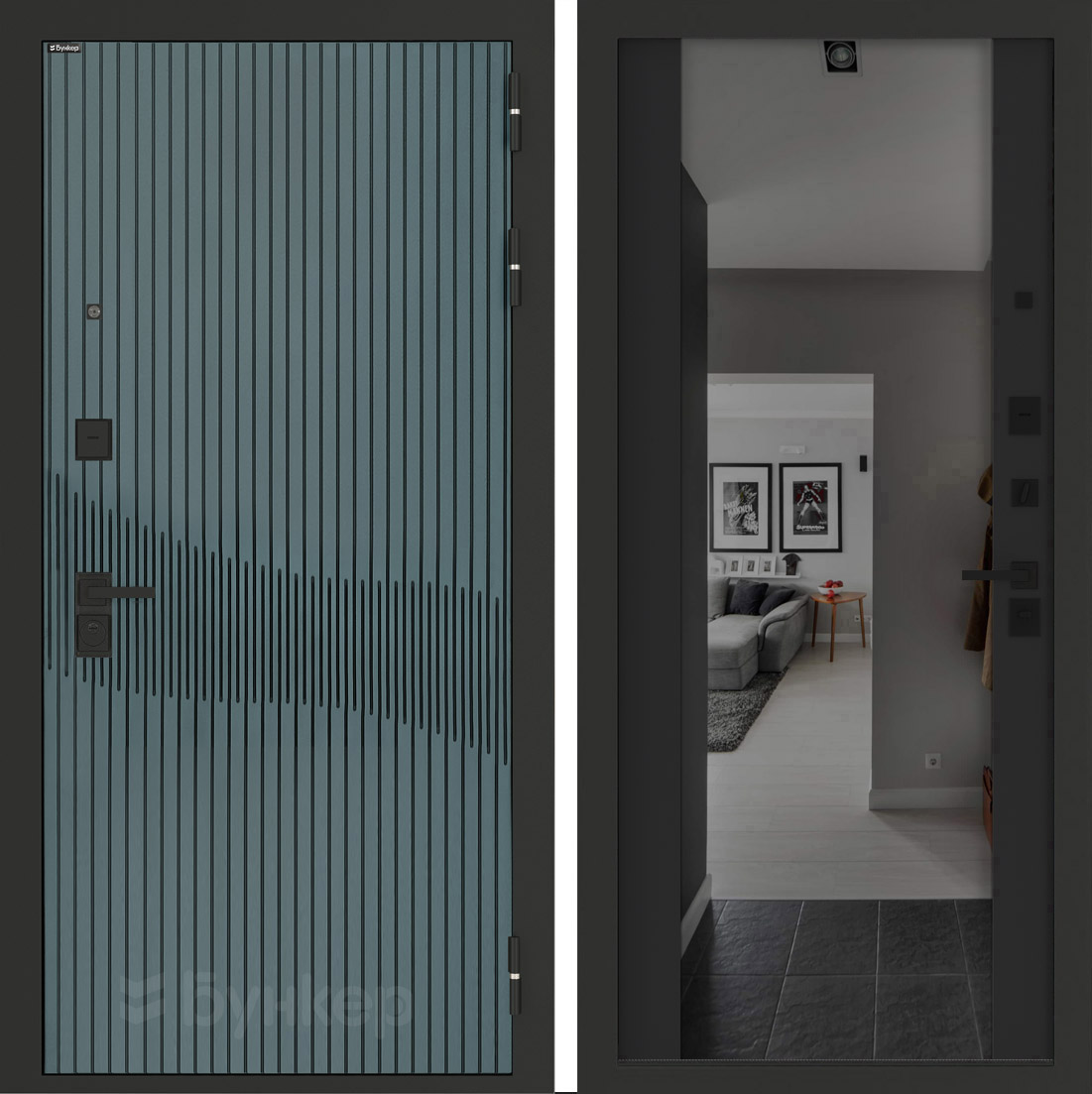 Входная дверь Бункер BN-13 - Зеркало максимум с тонировкой Черный кварц