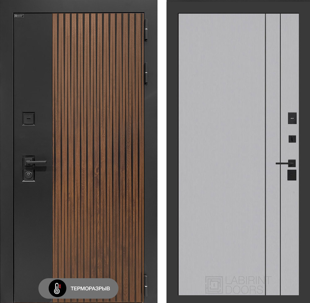 Входная дверь Лабиринт Айслаб - 10 Серый софт рельеф с терморазрывом