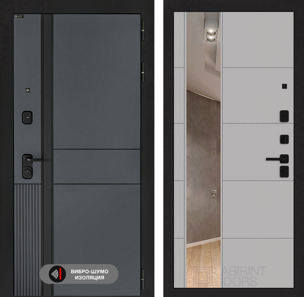 Входная дверь Лабиринт EVOLAB - Зеркало 19 Грей софт