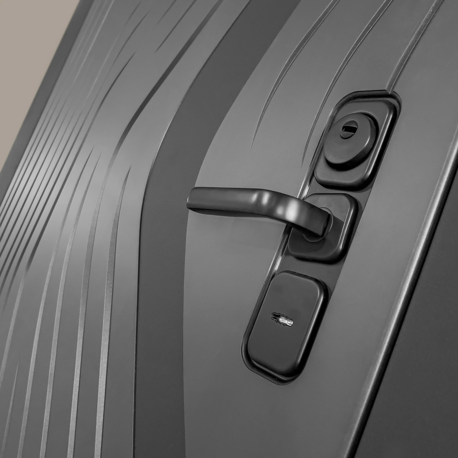 МДФ панель 10 мм, цвет "Velluto Oskuro" с патиной и вставкой из металла, наличник 100 мм.