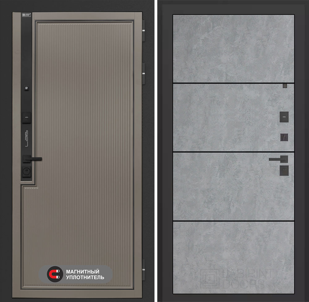 Входная дверь Лабиринт Лаб 1 Про - 25 Бетон светлый (черная вставка)