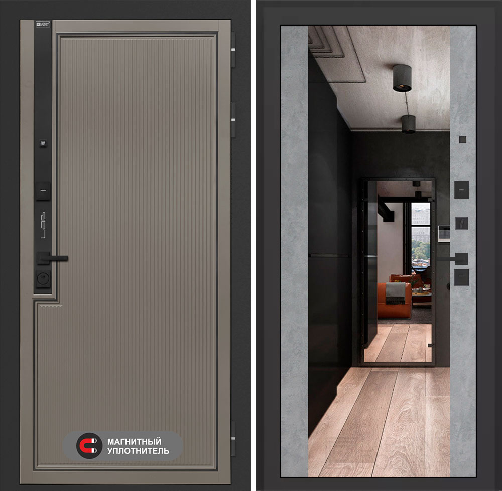 Входная дверь Лабиринт Лаб 1 Про - Зеркало максимум Бетон светлый