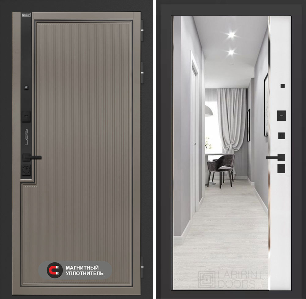 Входная дверь Лабиринт Лаб 1 Про - Зеркало панорама Белый софт