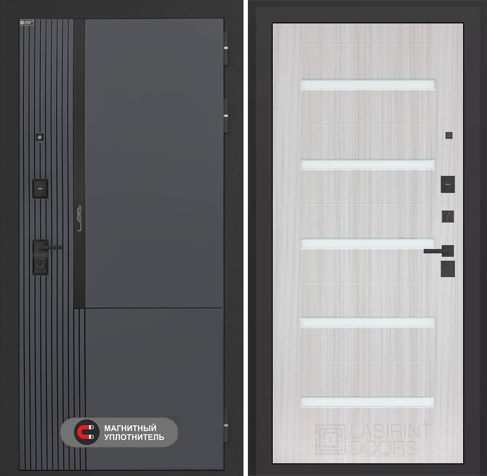 Входная дверь Лабиринт Лаб 2 Про - 01 Сандал белый стекло белое