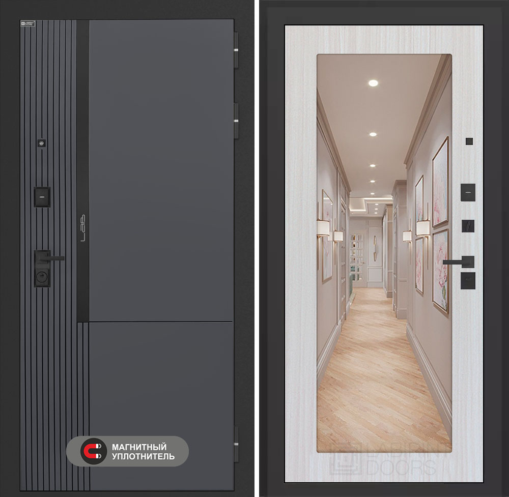 Входная дверь Лабиринт Лаб 2 Про - Зеркало 18 Сандал белый