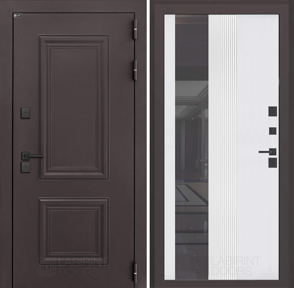 Входная дверь Лабиринт Полярис Лайт - 32 Зеркало белый софт рельеф с терморазрывом