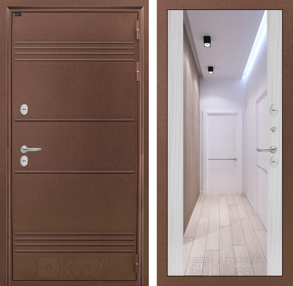 Входная дверь Лабиринт Термо Лайт - Зеркало максимум Сандал белый с терморазрывом