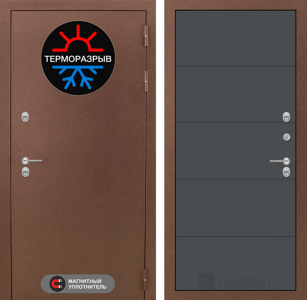 Входная дверь Лабиринт Термомагнит - 13 Графит софт с терморазрывом