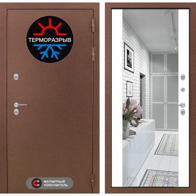 Входная дверь Лабиринт Термомагнит - Зеркало максимум Белый софт с терморазрывом