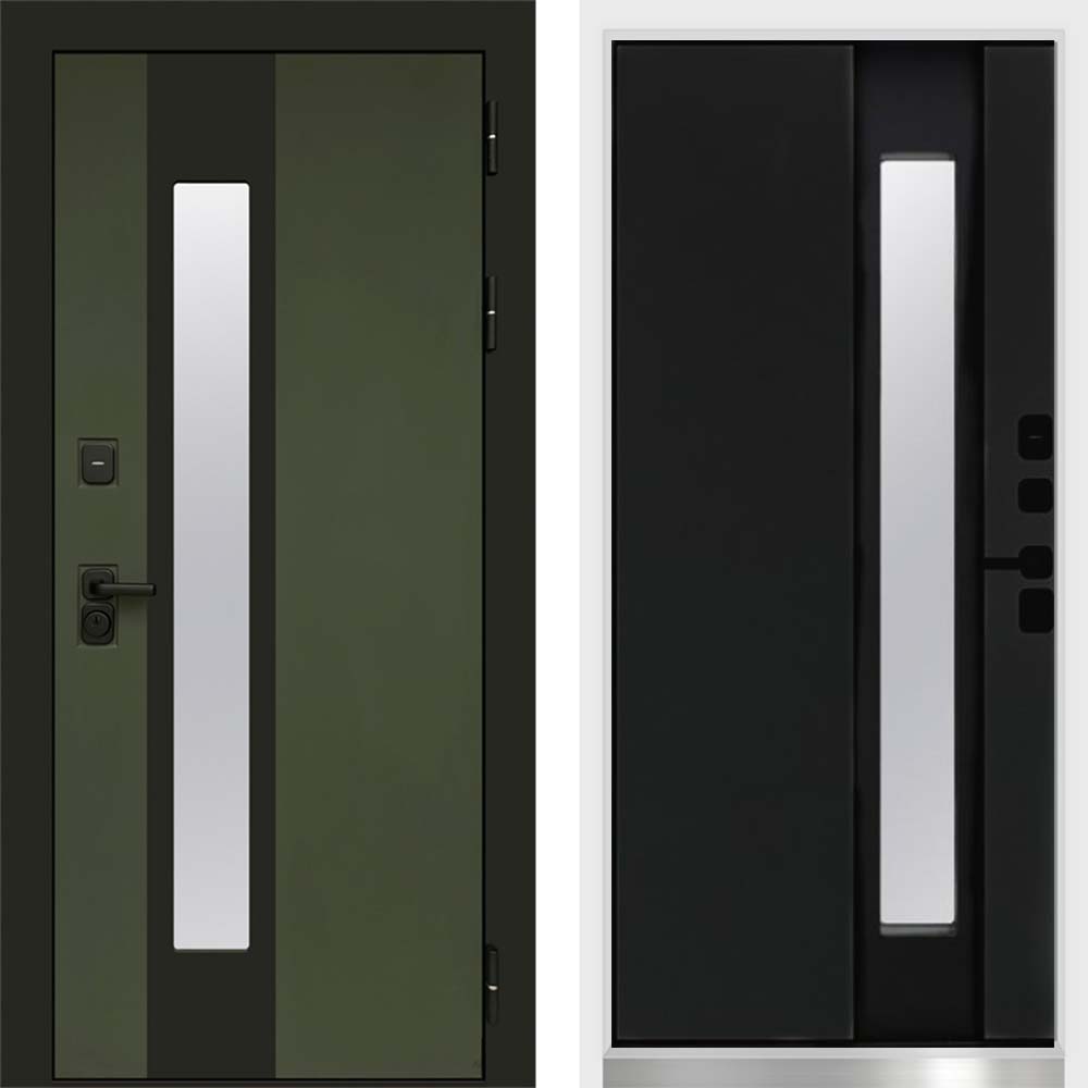 Входная дверь Termo-door Арктика Грин - Черный кварц с терморазрывом и стеклопакетом, белый короб