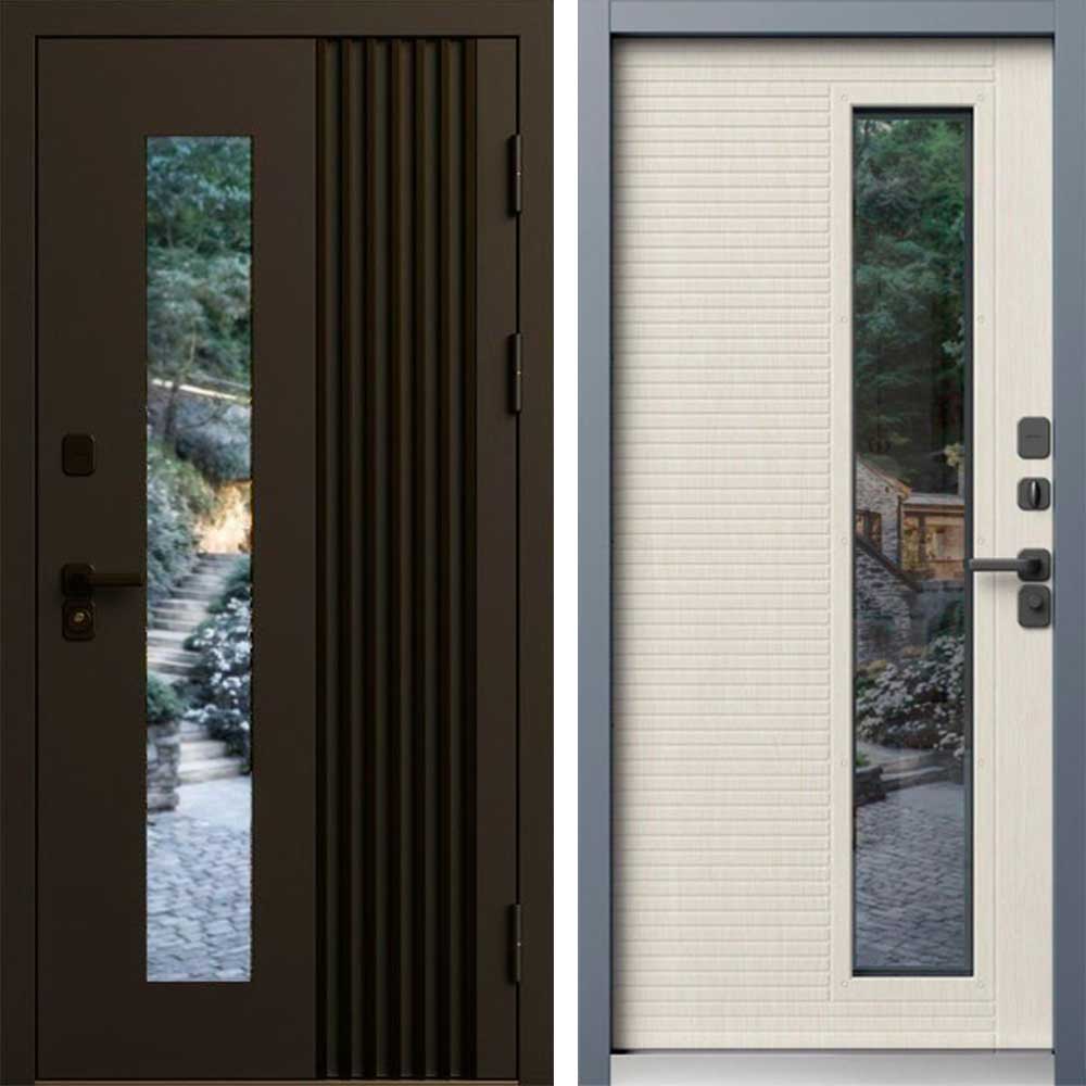 Входная дверь Termo-door Фортис Муар коричневый 8019 - Слоновая кость с терморазрывом и стеклопакетом