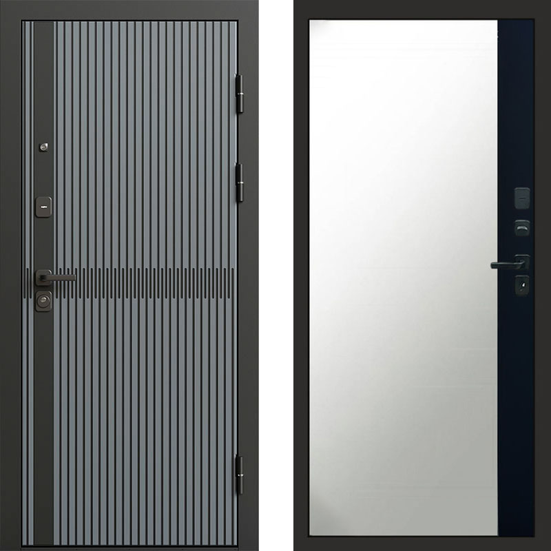 Входная дверь Termo-door Граунд Грей - Широкое Зеркало Фацет Черный кварц