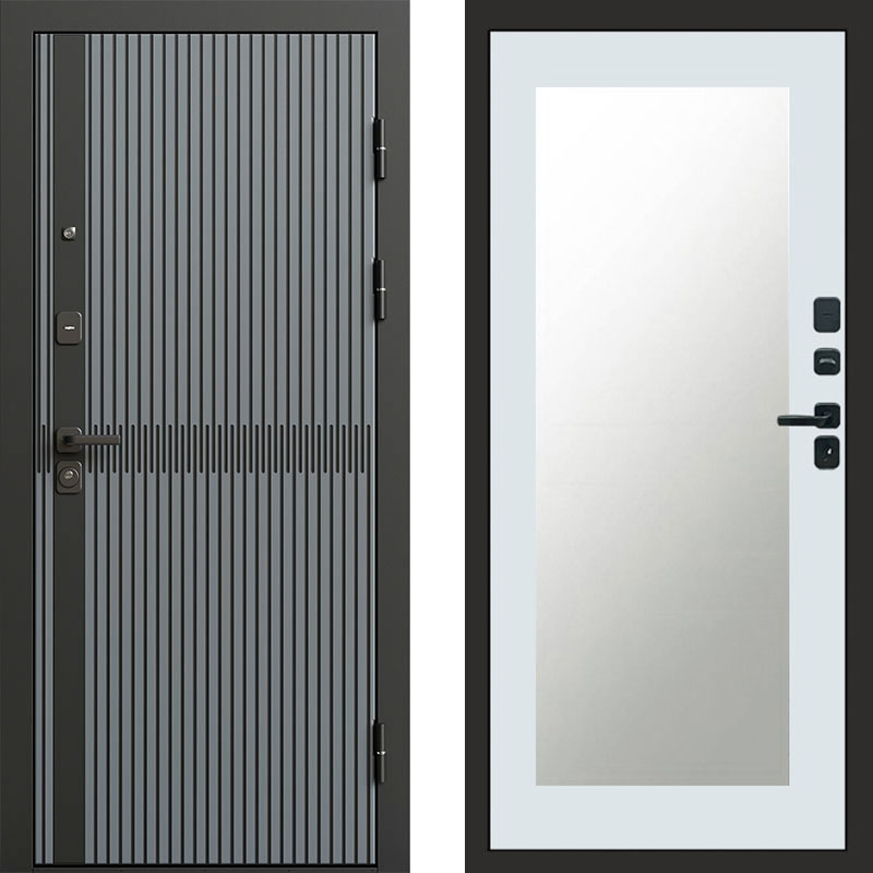 Входная дверь Termo-door Граунд Грей - Зеркало триумф Белый софт