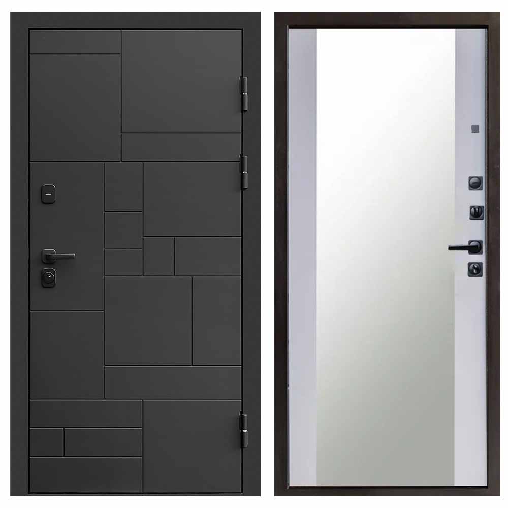 Входная дверь Termo-door Квадро Black - Зеркало Белый софт