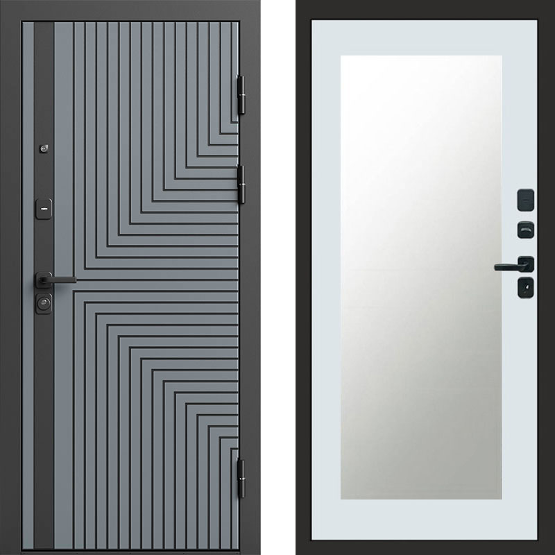 Входная дверь Termo-door Квантум Грей - Зеркало триумф Белый софт