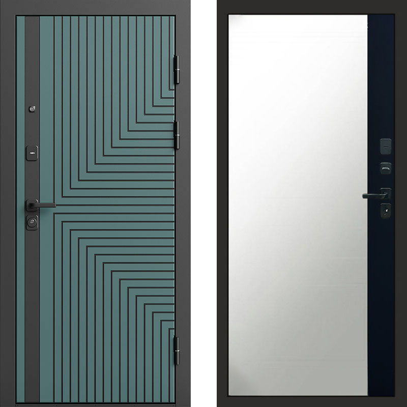 Входная дверь Termo-door Квантум velutto verde - Широкое Зеркало Фацет Черный кварц