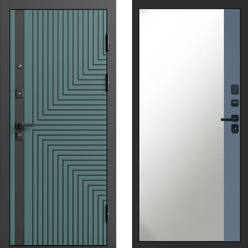 Входная дверь Termo-door Квантум velutto verde - Широкое Зеркало Фацет Грей софт