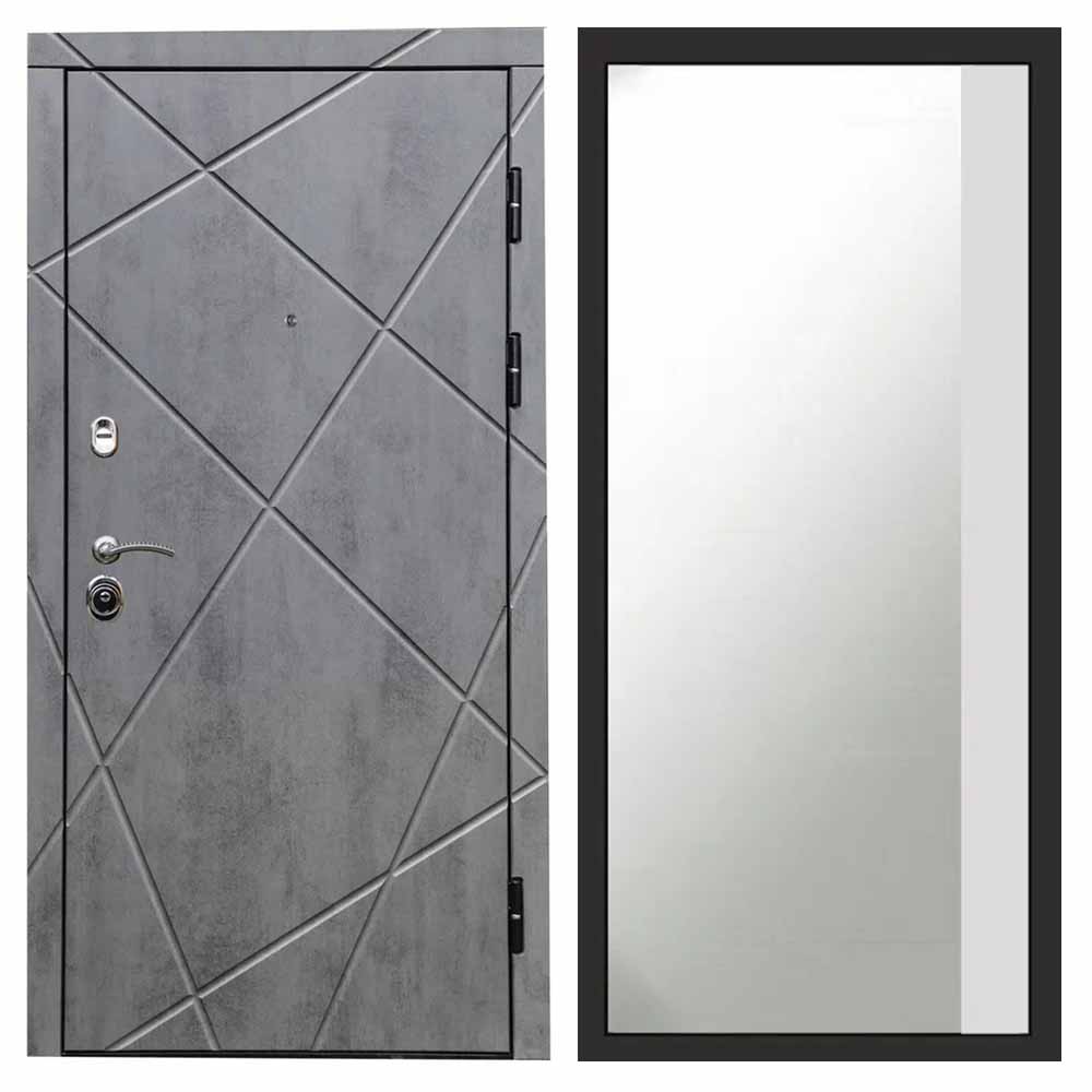 Входная дверь Termo-door Лучи Бетон - Широкое Зеркало Фацет Белый софт