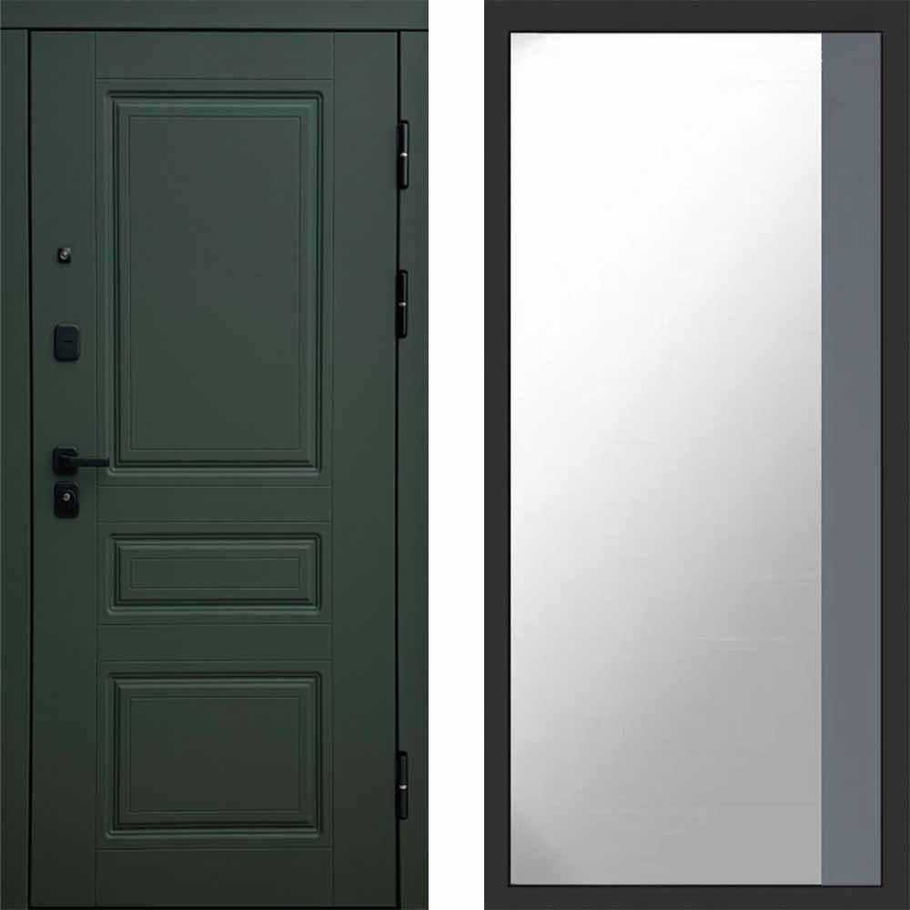 Входная дверь Termo-door Орегон Грин - Широкое Зеркало Фацет Грей софт