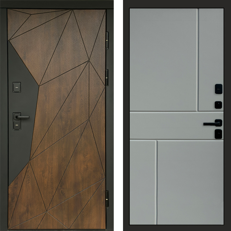Входная дверь Termo-door Премиум винорит Геометрия Дуб с терморазрывом - Горизонт Грей софт