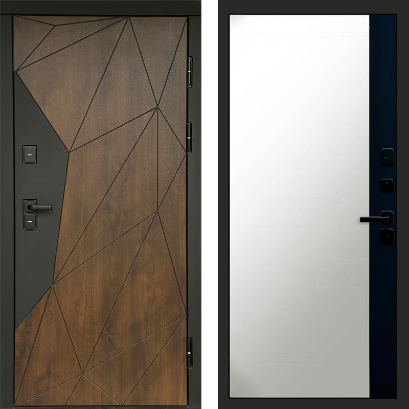 Входная дверь Termo-door Премиум винорит Геометрия Дуб с терморазрывом - Широкое Зеркало Фацет Черный кварц