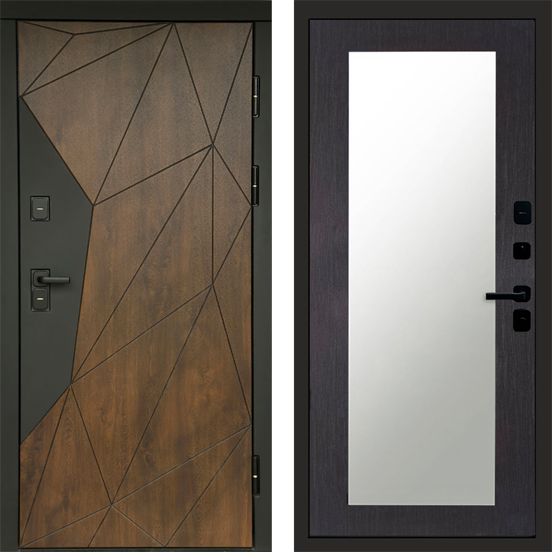 Входная дверь Termo-door Премиум винорит Геометрия Дуб с терморазрывом - Зеркало триумф Венге