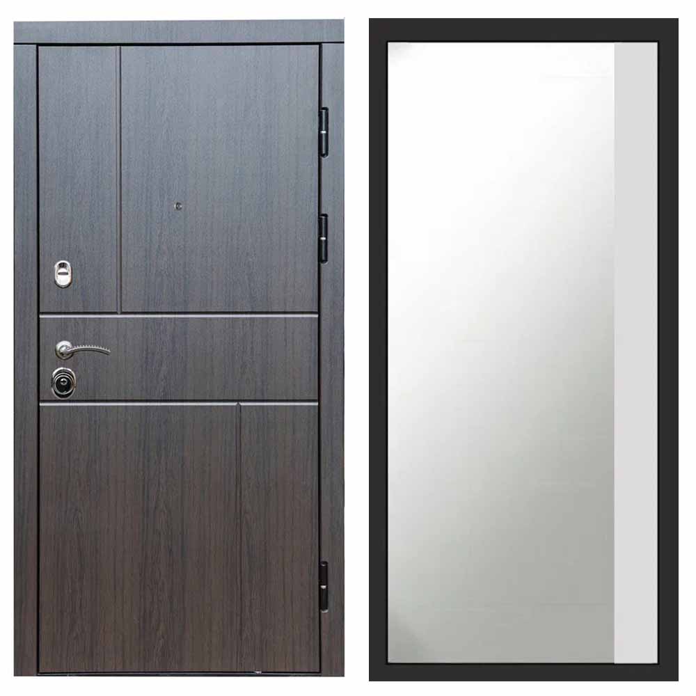 Входная дверь Termo-door Премиум винорит Вертикаль Венге с терморазрывом - Широкое Зеркало Фацет Белый софт