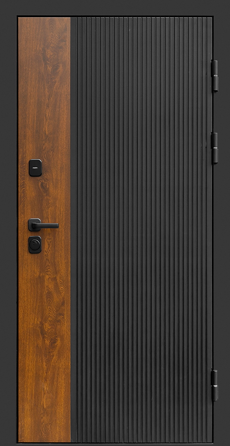 Фрезерованная МДФ панель 12 мм, наличник металл, цвет Черный кварц + Дуб