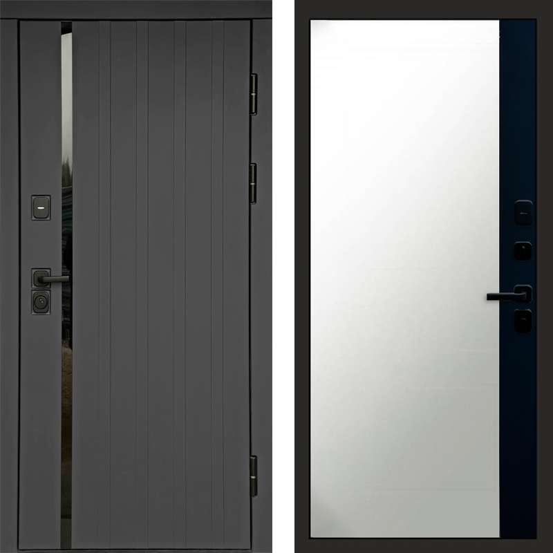 Входная дверь Termo-door Роял Графит - Широкое Зеркало Фацет Черный кварц