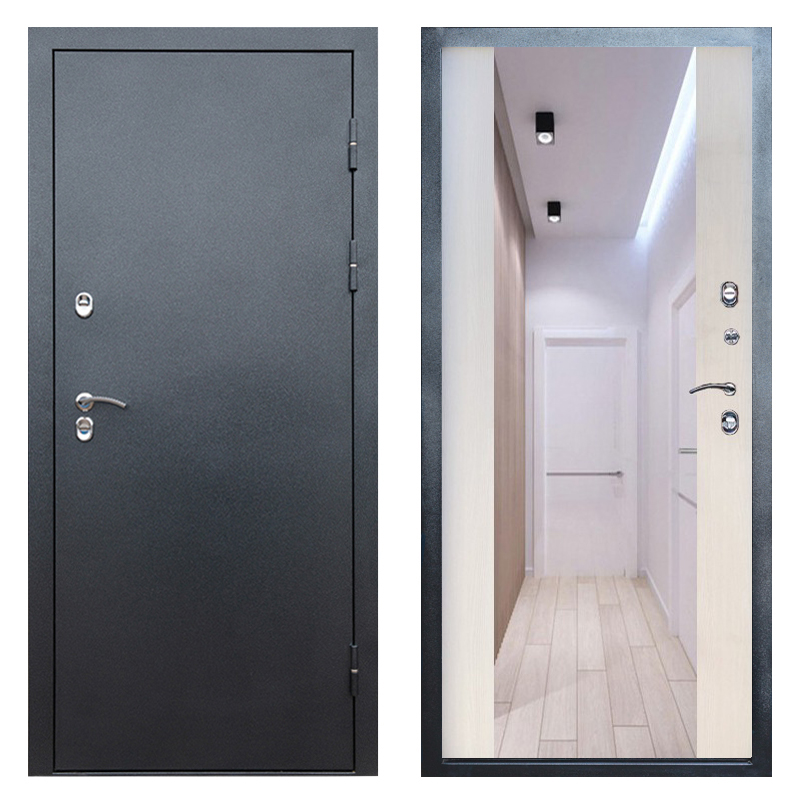 Входная дверь Termo-door Сибирь Антик серебро с терморазрывом - Зеркало Лиственница
