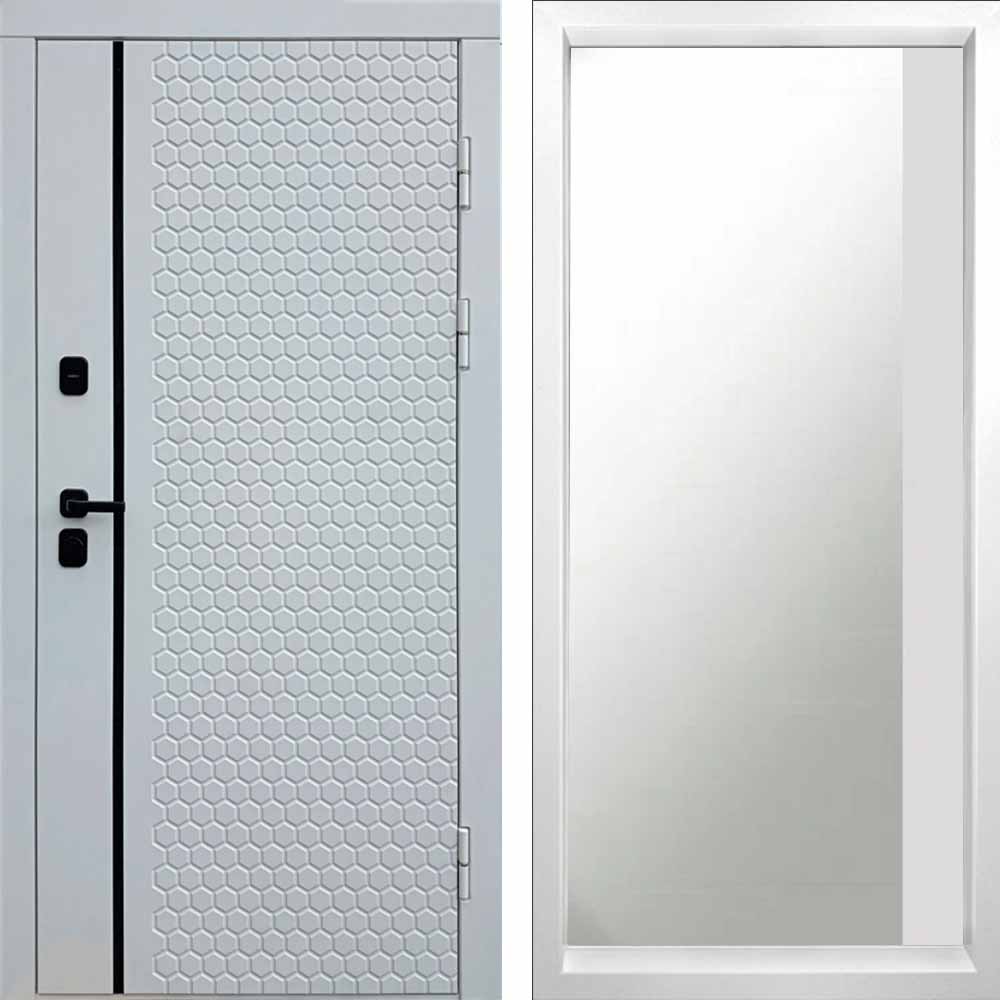 Входная дверь Termo-door Simple White - Широкое Зеркало Фацет Белый софт
