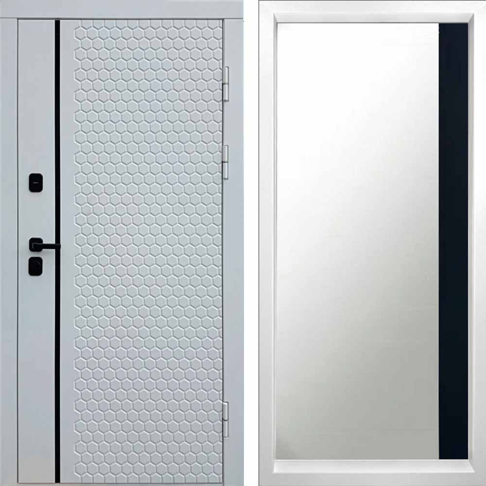 Входная дверь Termo-door Simple White - Широкое Зеркало Фацет Черный кварц