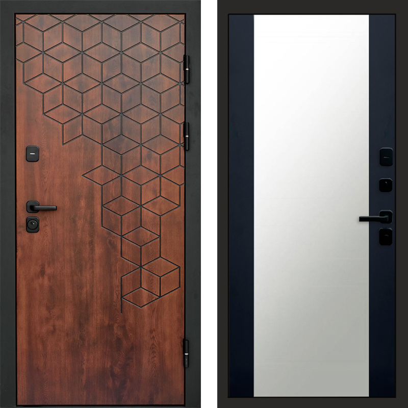 Входная дверь Termo-door Спейс Дуб патина - Зеркало Черный кварц+тонировка