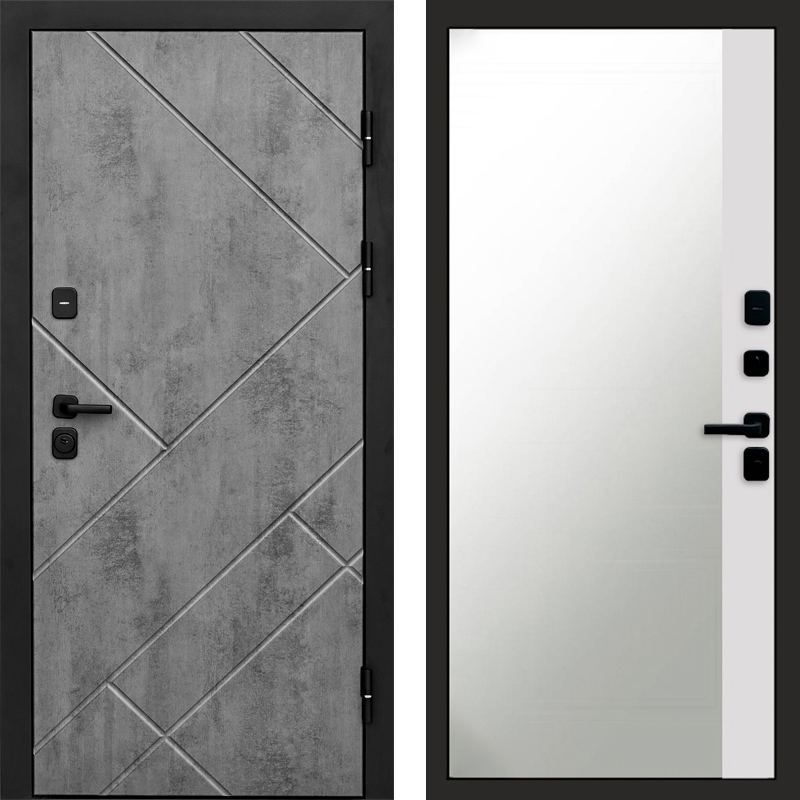 Входная дверь Termo-door Стоун Бетон - Широкое Зеркало Фацет Белый софт