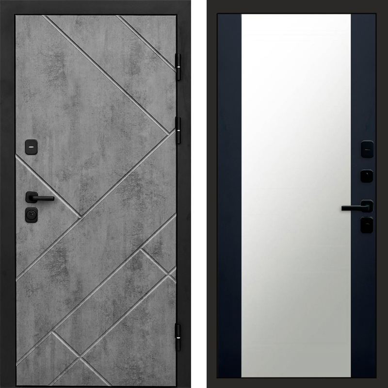 Входная дверь Termo-door Стоун Бетон - Зеркало Черный кварц+тонировка
