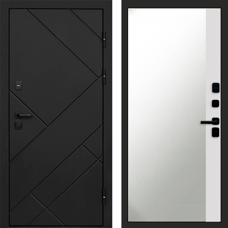Входная дверь Termo-door Стоун Black - Широкое Зеркало Фацет Белый софт