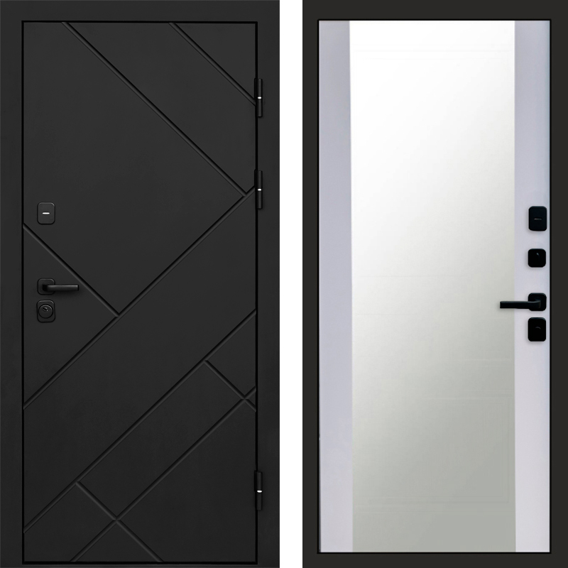 Входная дверь Termo-door Стоун Black - Зеркало Белый софт