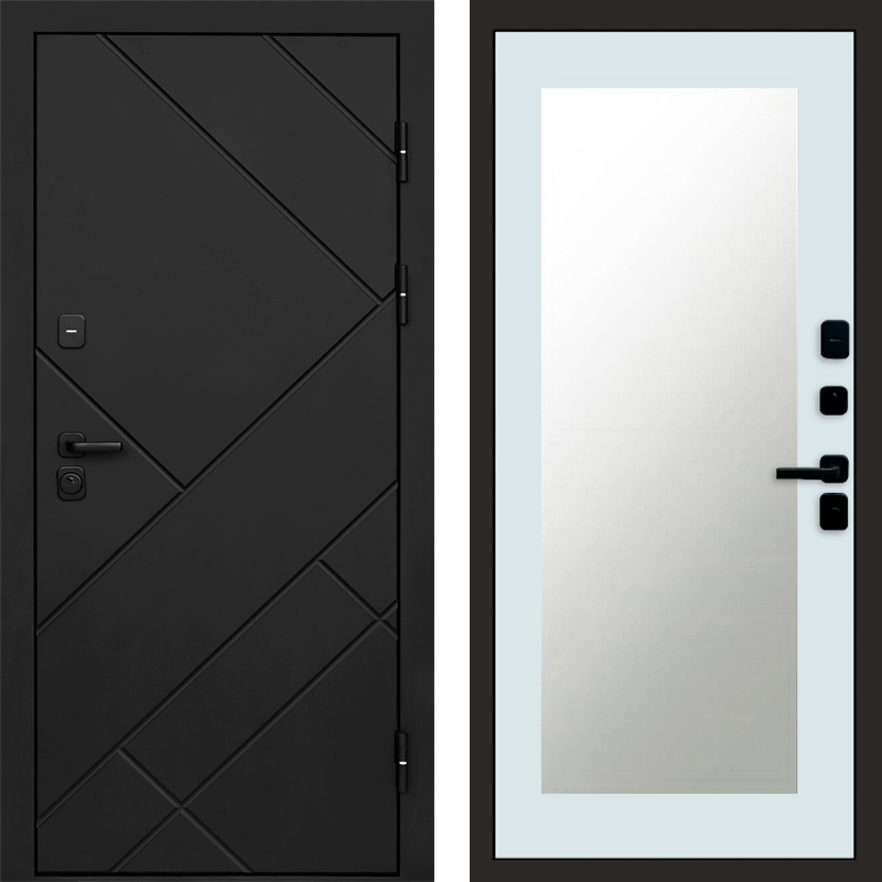 Входная дверь Termo-door Стоун Black - Зеркало триумф Белый софт