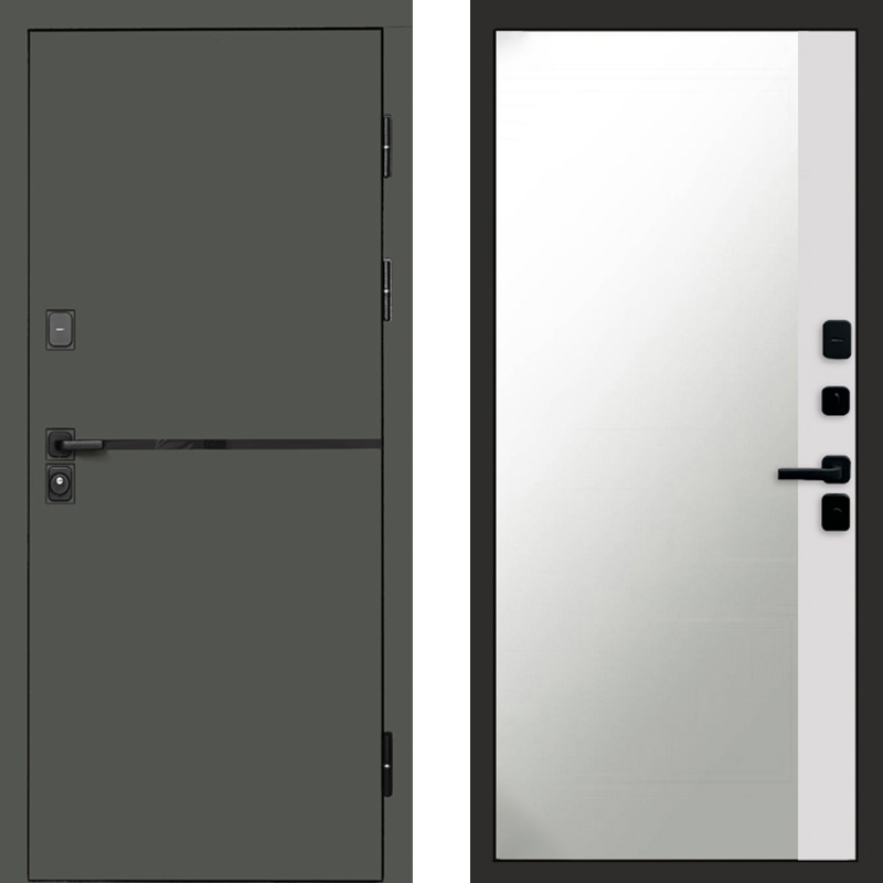 Входная дверь Termo-door Тренд Грин - Широкое Зеркало Фацет Белый софт