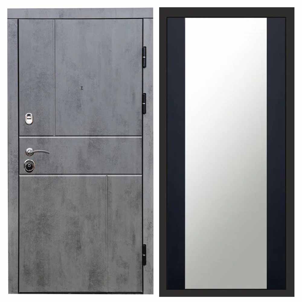 Входная дверь Termo-door Вертикаль Бетон - Зеркало Черный кварц+тонировка