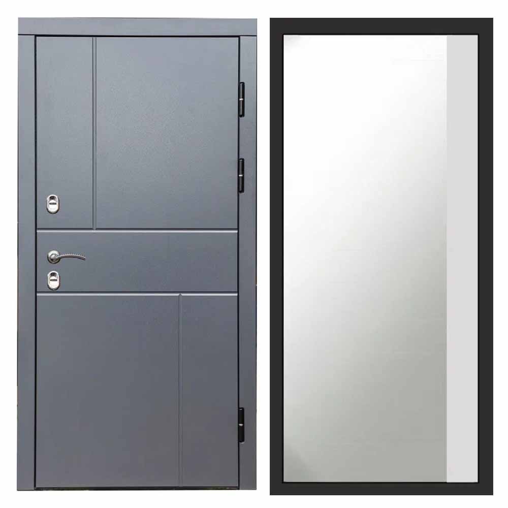 Входная дверь Termo-door Вертикаль Грей - Широкое Зеркало Фацет Белый софт