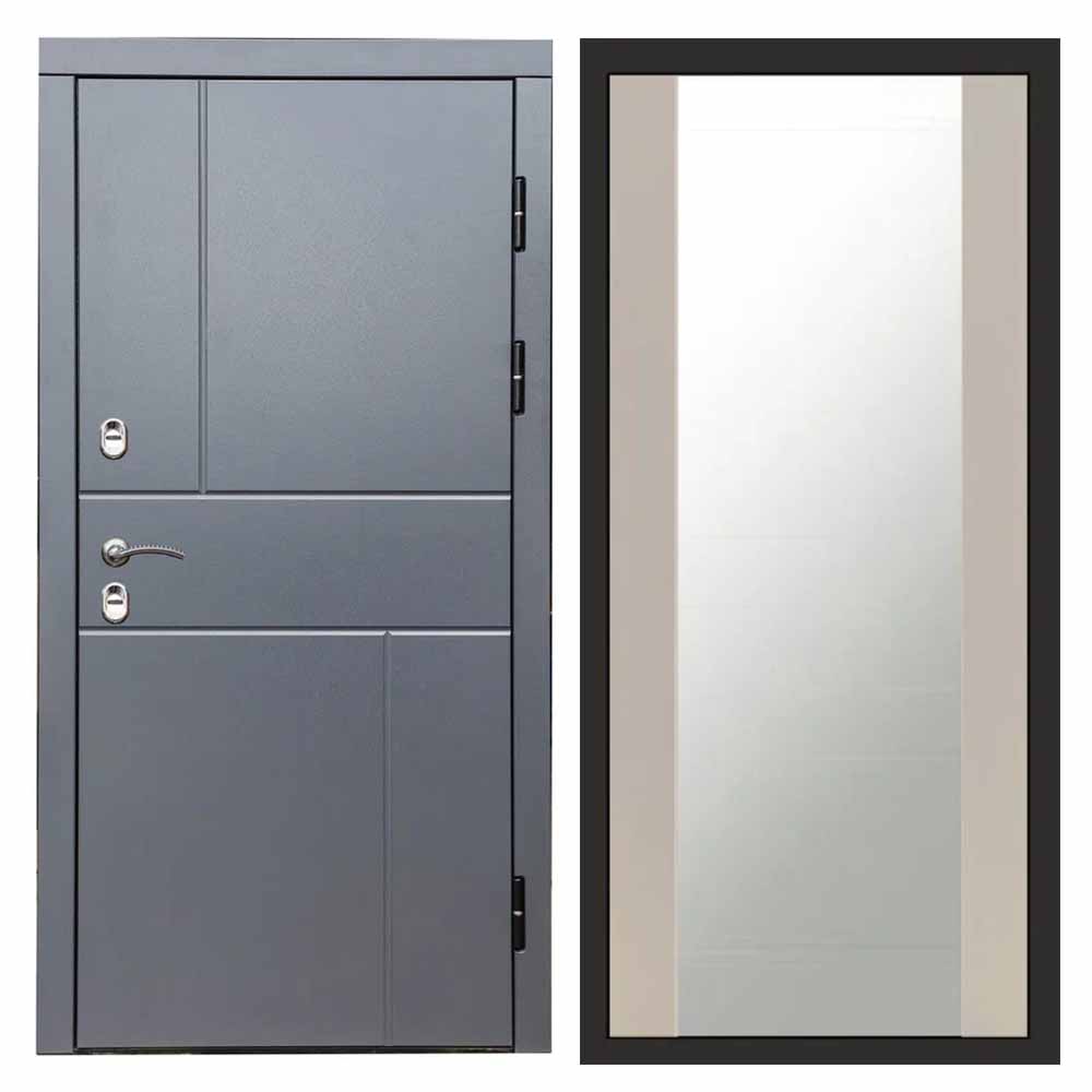 Входная дверь Termo-door Вертикаль Грей - Зеркало Слоновая кость