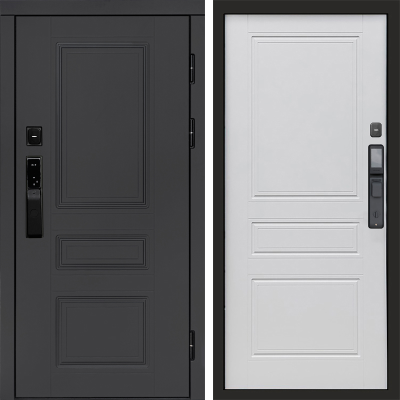 Входная дверь ВДК Орегон Графит с электронным замком - Классик Белый софт